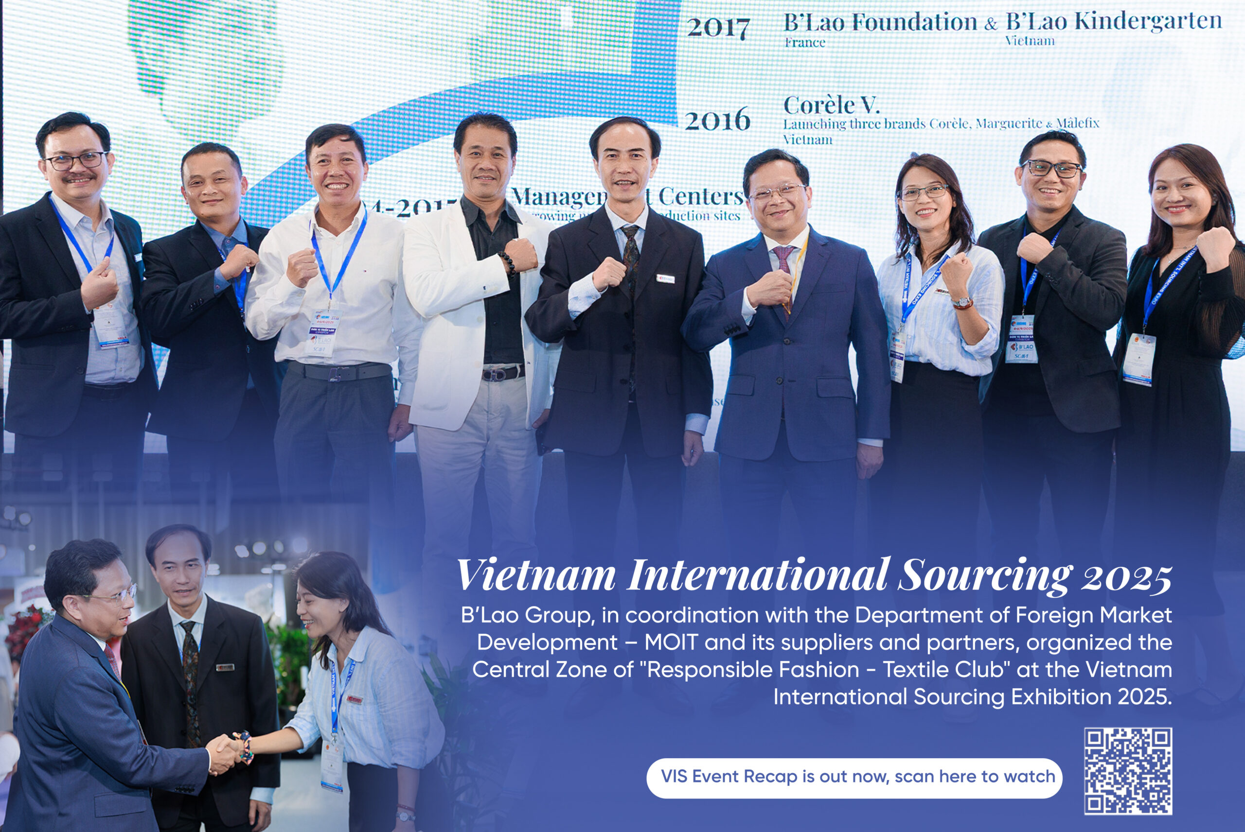 B’Lao – Scavi - Corèle Group, in coordination with the Department of Foreign Market Development – MOIT and its suppliers and partners, organized the Central Exhibition Zone: “Pioneering Responsible and Sustainable Textile & Fashion Club” within the framework of the Vietnam International Sourcing Exhibition. The Group also organized the “Exchange with the Young Generation: Responsible Fashion” which marked a significant milestone in shaping a new mindset of fashion consumption among Vietnamese youth, beginning with school uniforms. On this journey, B’Lao – Scavi – Corèle Group, together with more than 300 young students, parents, and teachers, has taken the lead in pioneering responsibility and extending its influence across the community.”